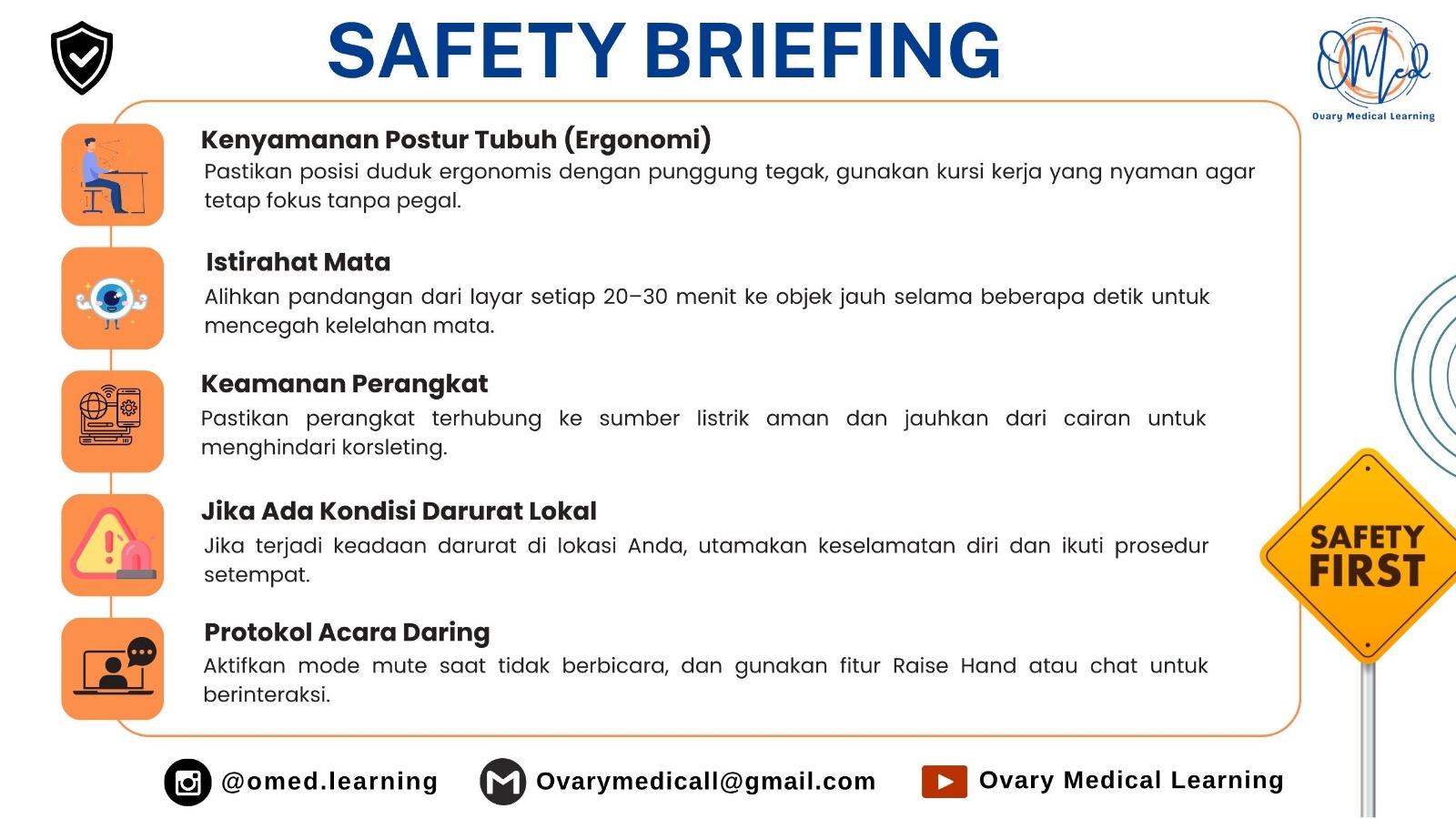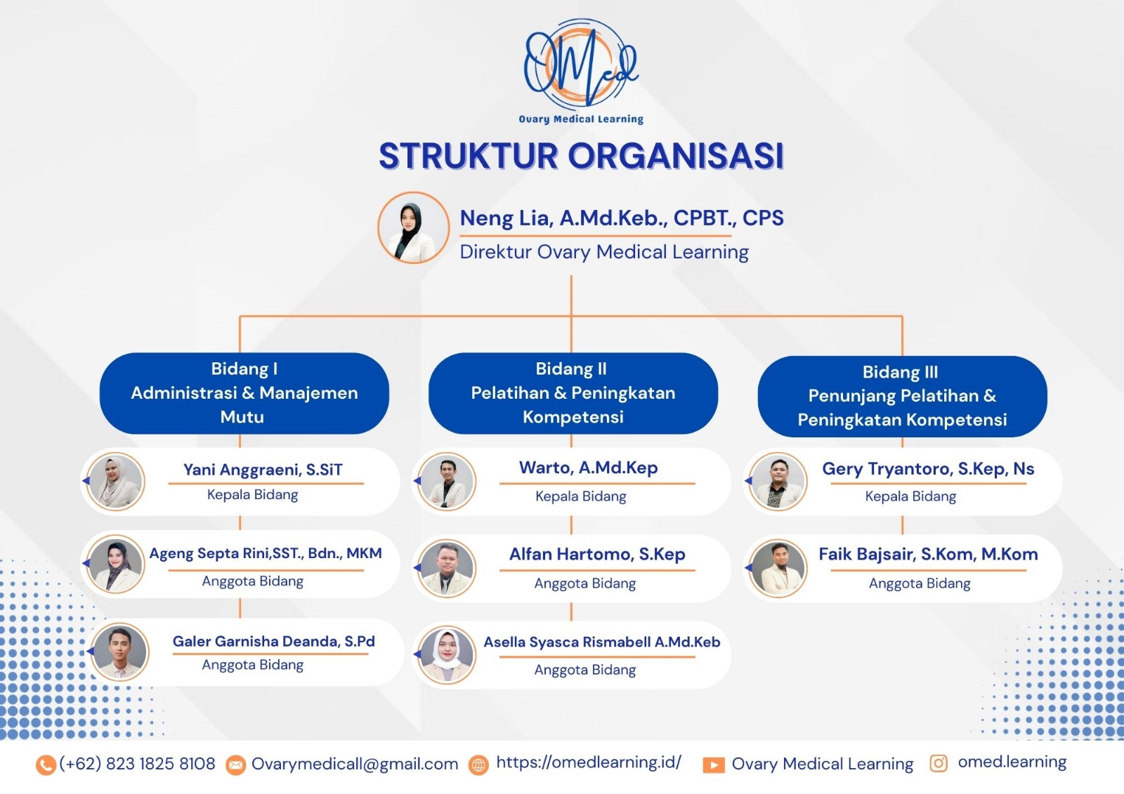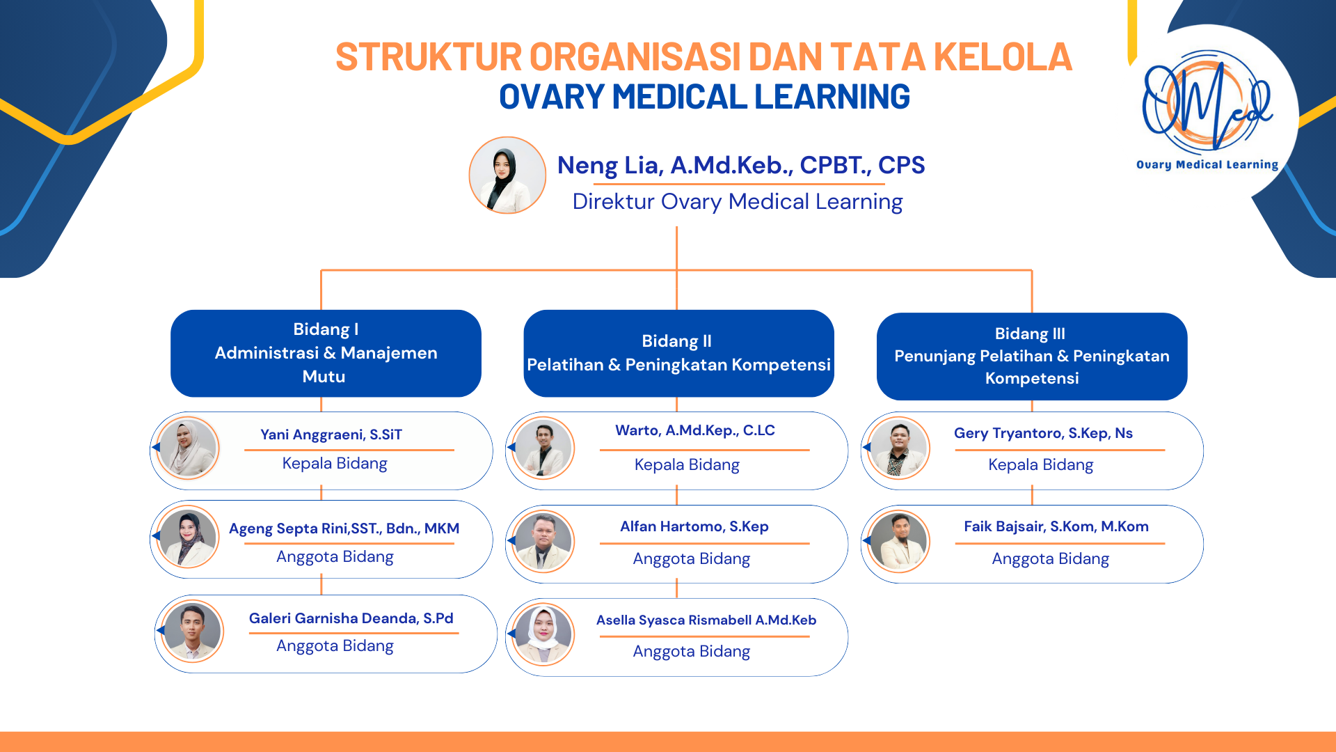 Ovary Medical Learning (OMED) adalah lembaga yang bergerak di bidang pengembangan Sumber Daya Manusia (SDM) kesehatan melalui pelatihan, seminar, workshop, dan program peningkatan kompetensi. Dibawah naungan CV Ovary Medical Learning, Ovary Medical Learning / Omed Leraning hadir sebagai respon atas pentingnya peningkatan mutu tenaga kesehatan agar sesuai dengan standar pelayanan, perkembangan ilmu pengetahuan, dan teknologi kesehatan modern. Ovary Medical Learning / Omed Leraning bertujuan menjadi pusat rujukan pengembangan SDM kesehatan yang unggul, profesional, dan berdaya saing nasional, sekaligus wujud kepedulian terhadap peningkatan mutu pelayanan kesehatan. Dengan visi, misi, serta tujuan yang jelas, Ovary Medical Learning / Omed Leraning menyelenggarakan berbagai program pengembangan kompetensi untuk mahasiswa maupun tenaga kesehatan